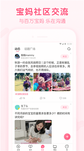 充分满足妈妈们的交流需求,轻松构筑丰富多彩的话题世界,从孕期琐事到萌娃趣事,再到育儿经验,每个小话题都包含妈妈的大世界!