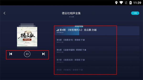 3、找到自己心仪的有声资源,进来你可以自由更换集数,也可以进行暂停下一集操作。