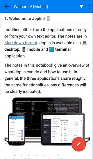 可以用 Markdown 格式(支持数学符号和复选框)记笔记,可以在笔记中添加附件(使用图像预览)或在外部 Markdown 编辑器中编辑它们并在每次保存文件时自动在 Joplin 中更新它们。