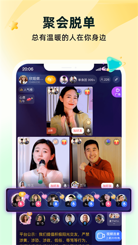 多人语音视频聊天交友,生日会,游戏趴,可参与可围观,群聊互嗨,避免尬聊。