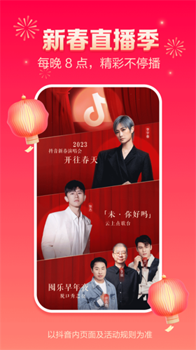 在抖音直播间,有更多年味十足的精彩节目晚会!1月5日至2月5日,更多惊喜活动等你体验!具体玩法及参与,详见“温暖中国年”活动规则。