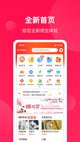 4、这里支持外卖配送等功能,给用户提供超棒的服务,很多惊喜都能够体验,让用户能够体验一个超级靠谱的生活服务平台。